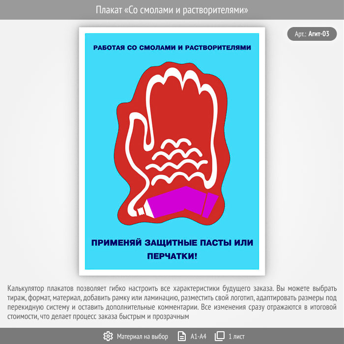 Плакат «Со смолами и растворителями» (Агит-03, 1 лист) в Обнинске купить