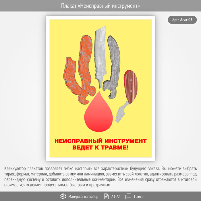 Плакат «Неисправный инструмент» (Агит-05, 1 лист) в Обнинске купить