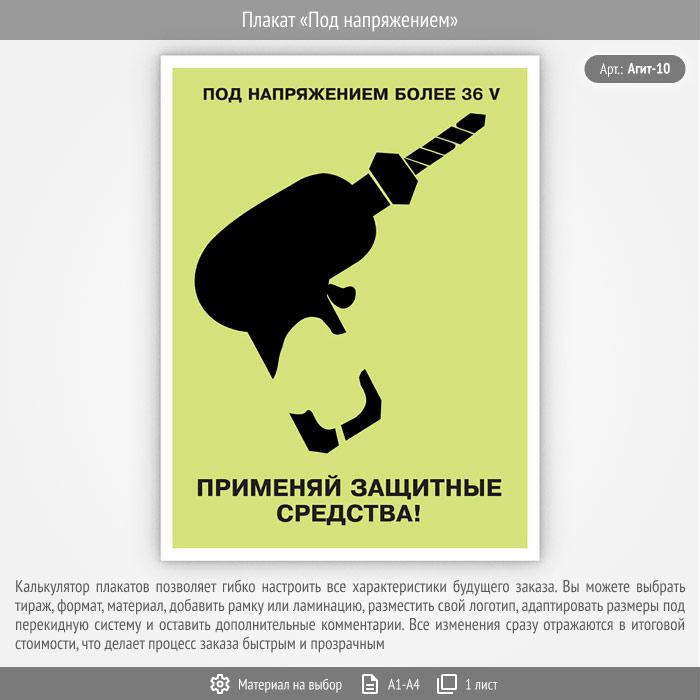 Плакат «Под напряжением» (Агит-10, 1 лист) в Обнинске купить
