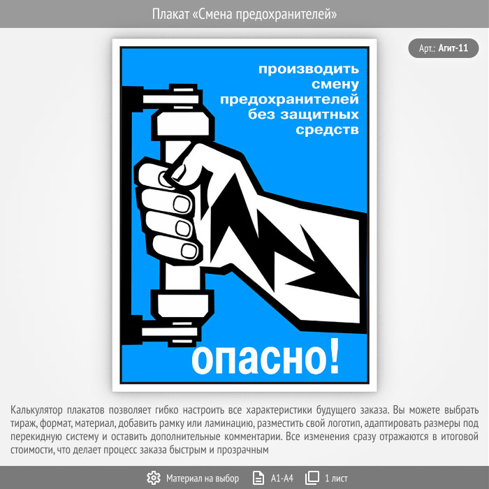 Плакат «Смена предохранителей» (Агит-11, 1 лист) в Обнинске купить