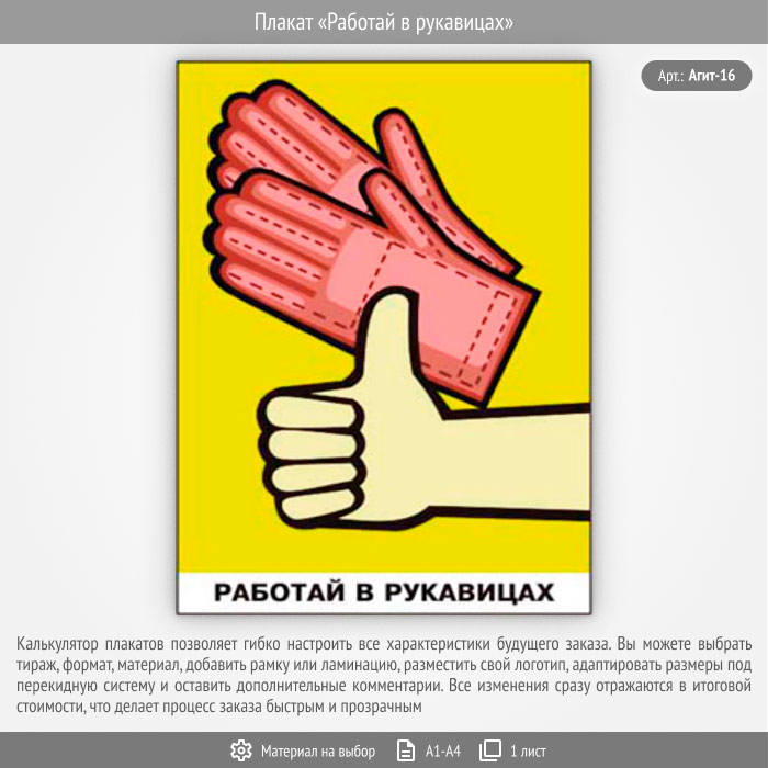 Плакат «Работай в рукавицах» (Агит-16, 1 лист) в Обнинске купить