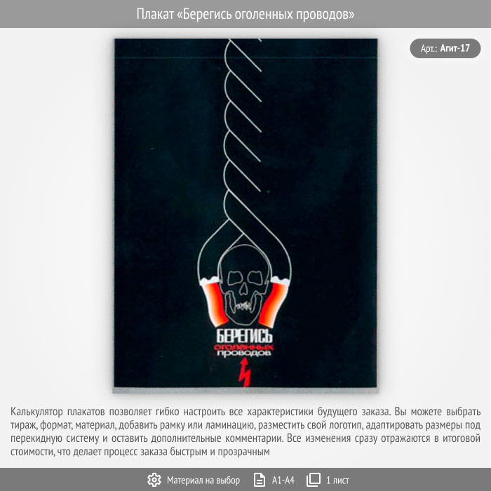 Плакат «Берегись оголенных проводов» (Агит-17, 1 лист) в Обнинске купить