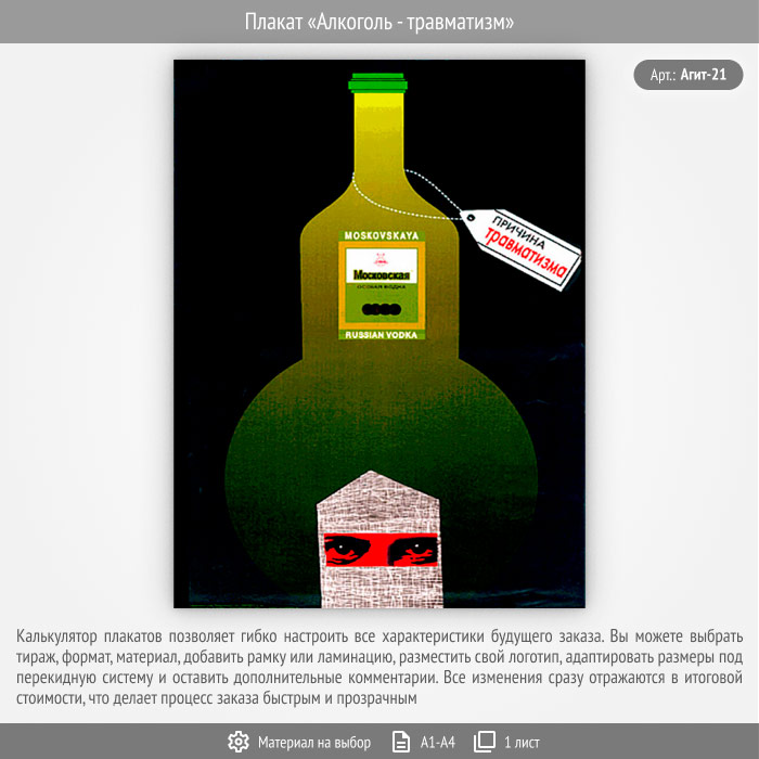 Плакат «Алкоголь - травматизм» (Агит-21, 1 лист) в Обнинске купить