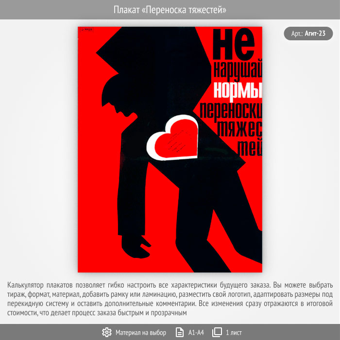 Плакат «Переноска тяжестей» (Агит-23, 1 лист) в Обнинске купить