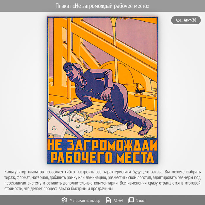 Плакат «Не загромождай рабочее место» (Агит-28, 1 лист) в Обнинске купить