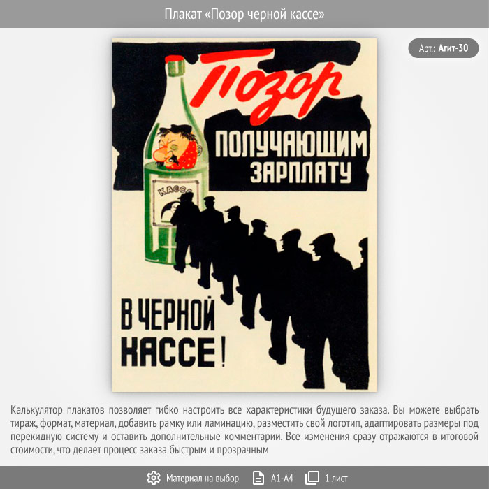 Плакат «Позор черной кассе» (Агит-30, 1 лист) в Обнинске купить