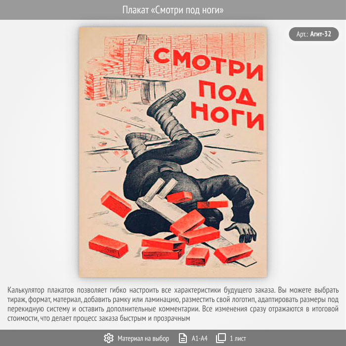Плакат «Смотри под ноги» (Агит-32, 1 лист) в Обнинске купить