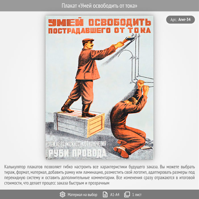 Плакат «Умей освободить от тока» (Агит-34, 1 лист) в Обнинске купить