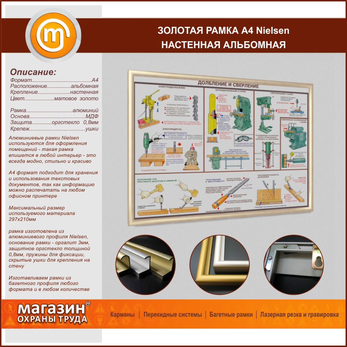 Багетная настенная рамка «Nielsen» А4 формата, альбомная, матовое золото в Обнинске купить