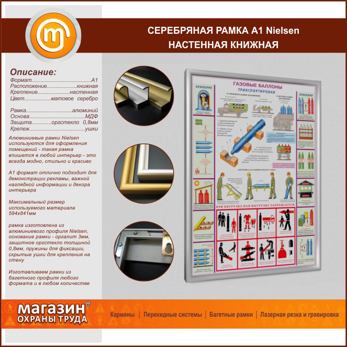 Багетная настенная рамка «Nielsen» А1 формата, книжная, матовое серебро в Обнинске купить