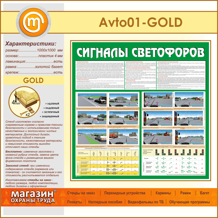 Стенд «Сигналы светофоров» (AV-01-GOLD) в Обнинске купить