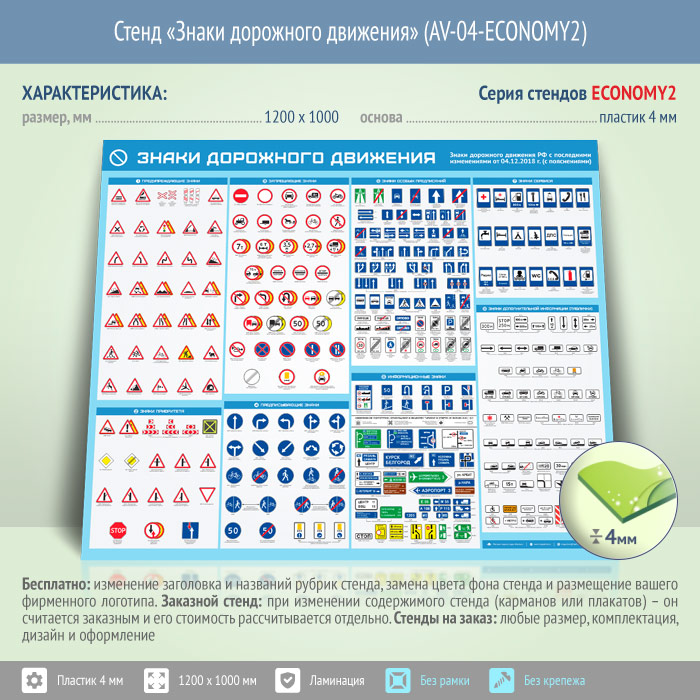 Стенд «Знаки дорожного движения» (AV-04-ECONOMY2) в Обнинске купить