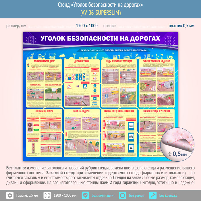 Стенд «Уголок безопасности на дорогах» (AV-06-SUPERSLIM) в Обнинске купить