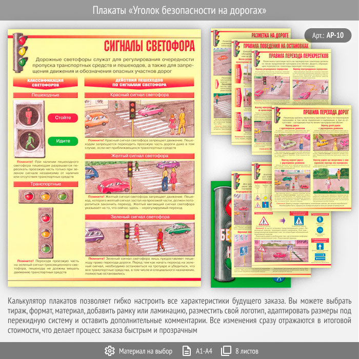 Плакаты «Уголок безопасности на дорогах» (АР-10, 8 листов) в Обнинске купить