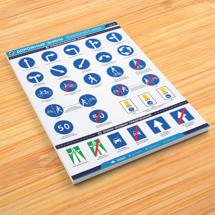 Плакаты «Дорожные знаки» (М-01, ламинированная бумага, А2, 8 листов) в Обнинске купить