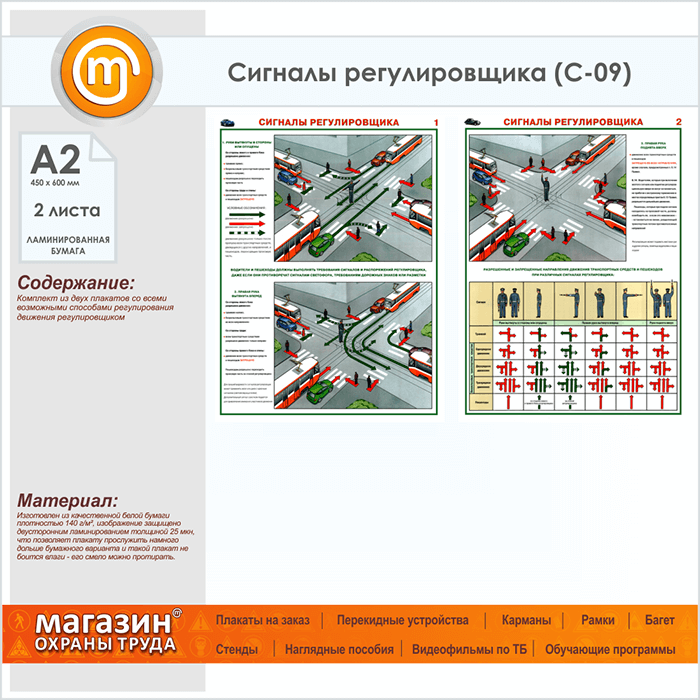 Плакаты «Сигналы регулировщика» (С-09, ламинированная бумага, А2, 2 листа) в Обнинске купить
