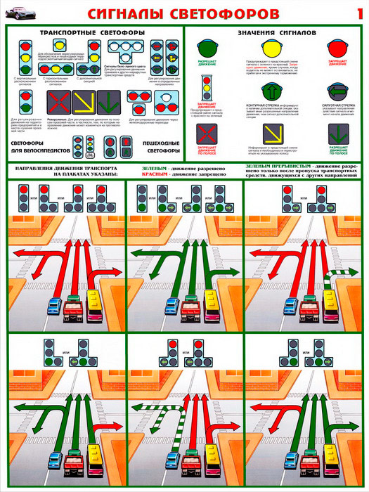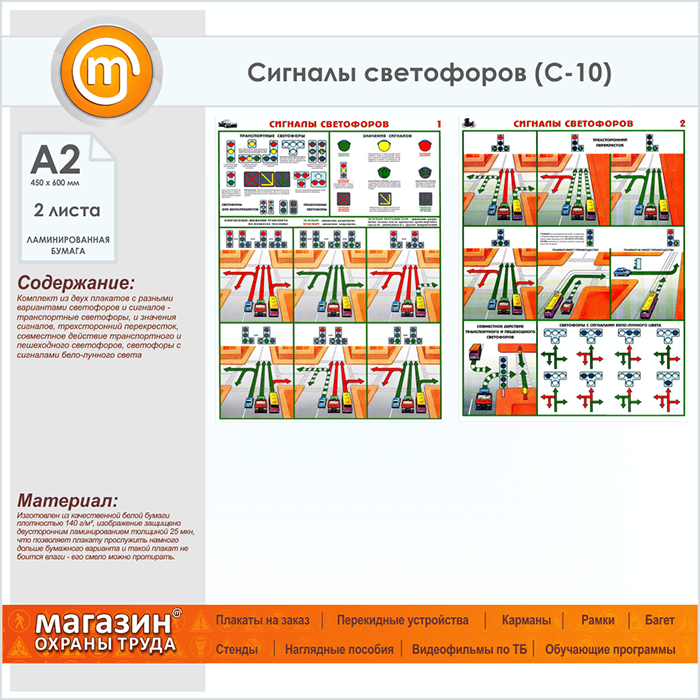 Плакаты «Сигналы светофоров» (С-10, ламинированная бумага, А2, 2 листа) в Обнинске купить
