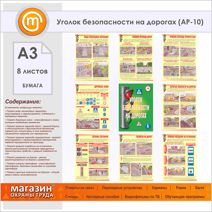 Плакаты «Уголок безопасности на дорогах» (АР-10, бумага, А3, 8 листов) в Обнинске купить