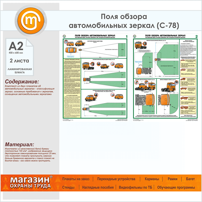 Плакаты «Поля обзора автомобильных зеркал» (С-78, ламинированная бумага, А2, 2 листа) в Обнинске купить
