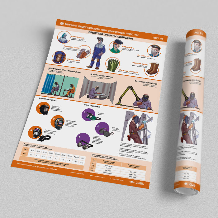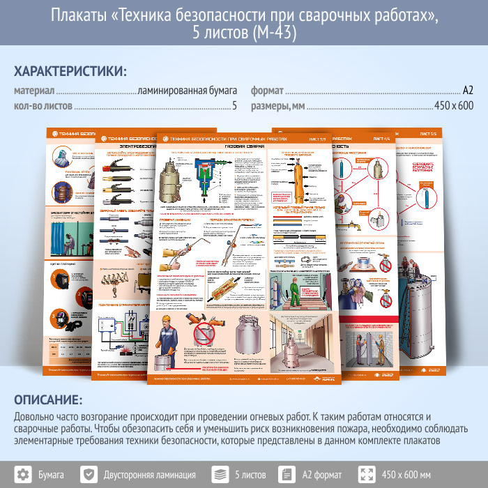 Плакаты «Техника безопасности при сварочных работах» (М-43, ламинированная бумага, А2, 5 листов) в Обнинске купить