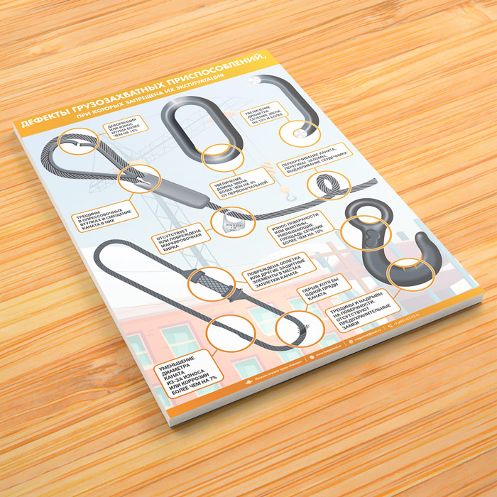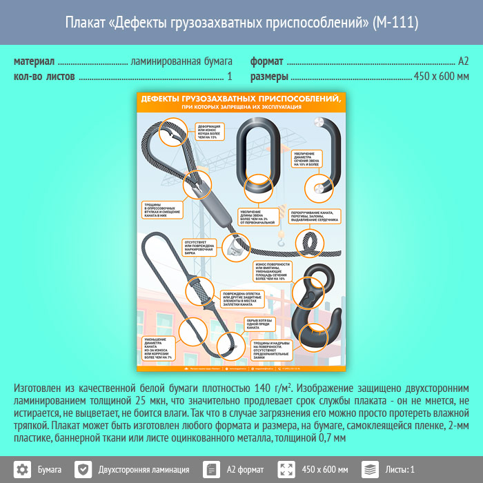Плакат «Дефекты грузозахватных приспособлений» (М-111, ламинированная бумага, А2, 1 лист) в Обнинске купить