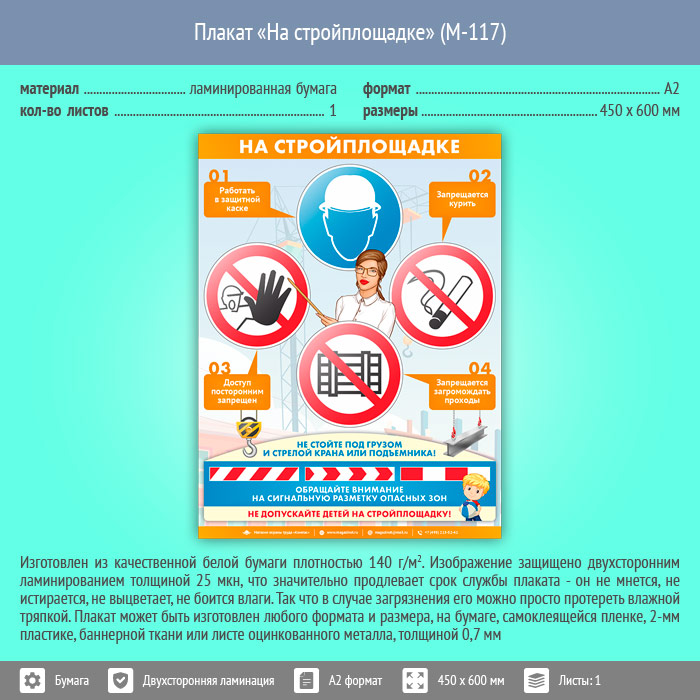 Плакат «На стройплощадке» (М-117, ламинированная бумага, А2, 1 лист) в Обнинске купить