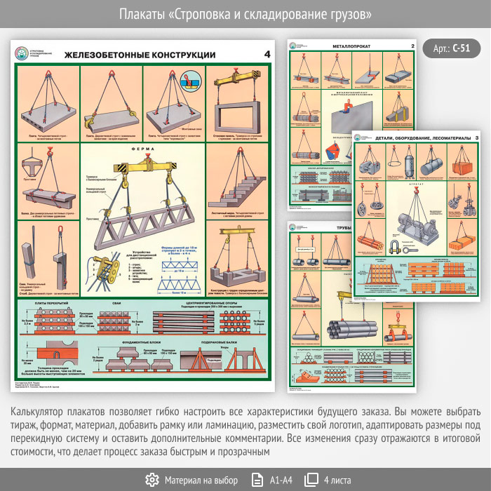 Плакаты «Строповка и складирование грузов» (С-51, 4 листа) в Обнинске купить