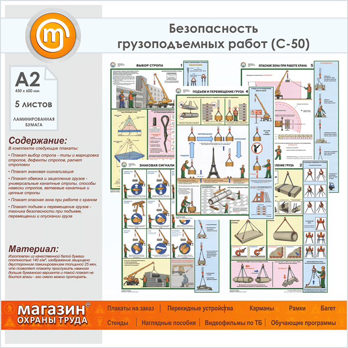 Плакаты «Безопасность грузоподъемных работ» (С-50, ламинированная бумага, А2, 5 листов) в Обнинске купить