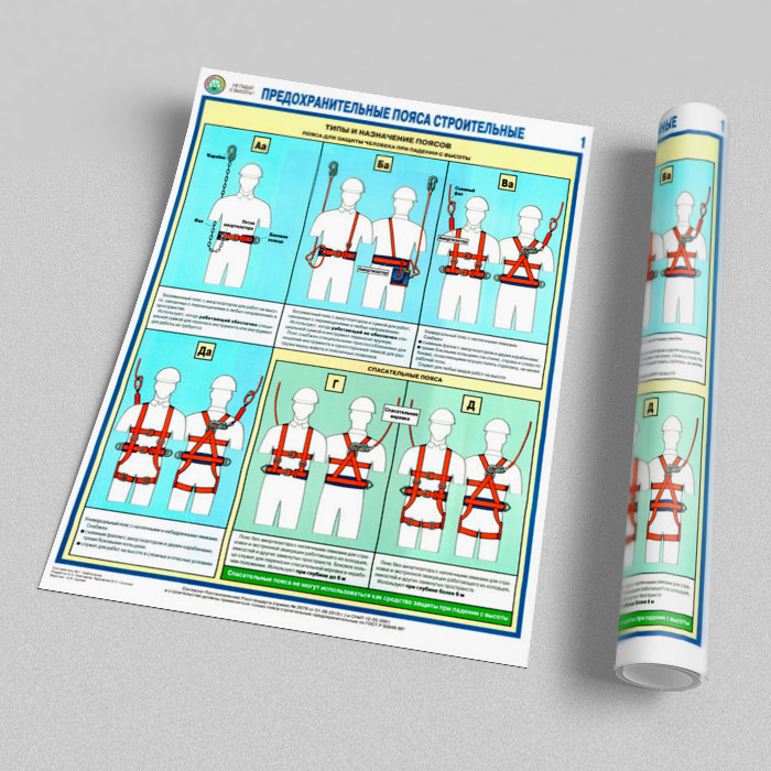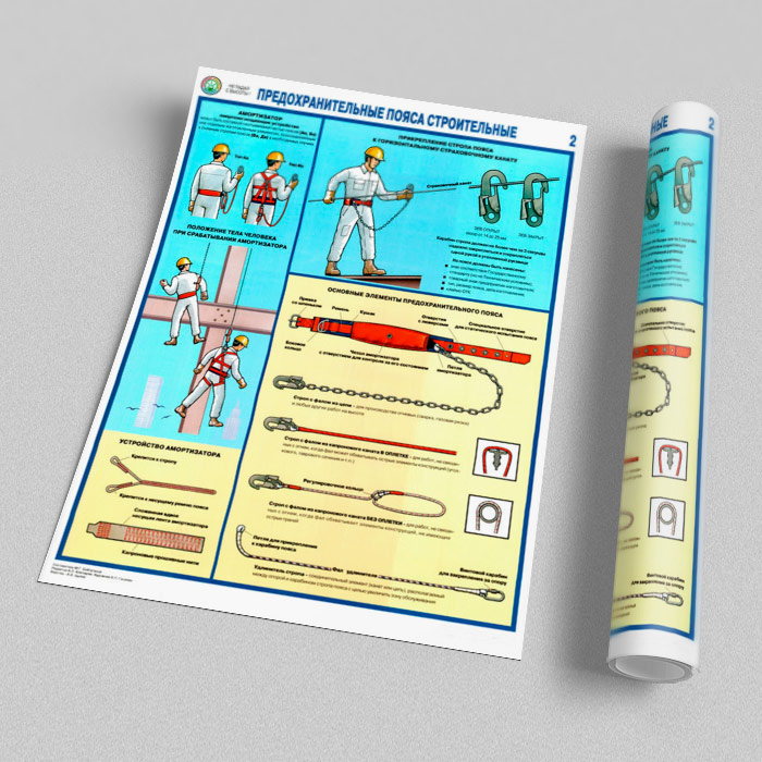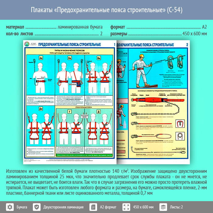 Плакаты «Предохранительные пояса строительные» (С-54, ламинированная бумага, А2, 2 листа) в Обнинске купить