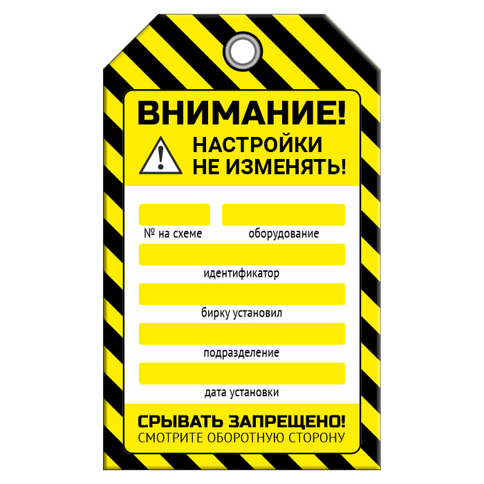 Бирка «НАСТРОЙКИ НЕ ИЗМЕНЯТЬ!» (1 шт., двусторонняя, пластик, 70х115 мм) в Обнинске купить