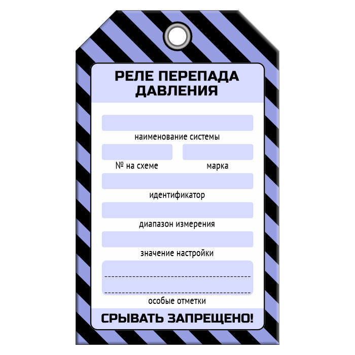 Бирка «РЕЛЕ ПЕРЕПАДА ДАВЛЕНИЯ» (1 шт., односторонняя, пластик, 70х115 мм) в Обнинске купить