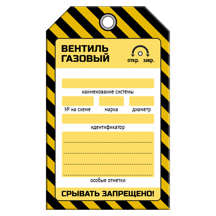 Бирка «ВЕНТИЛЬ ГАЗОВЫЙ» (1 шт., односторонняя, пластик, 70х115 мм) в Обнинске купить
