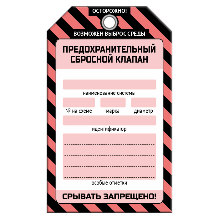 Бирка «ПРЕДОХРАНИТЕЛЬНЫЙ СБРОСНОЙ КЛАПАН» (1 шт., односторонняя, пластик, 70х115 мм) в Обнинске купить