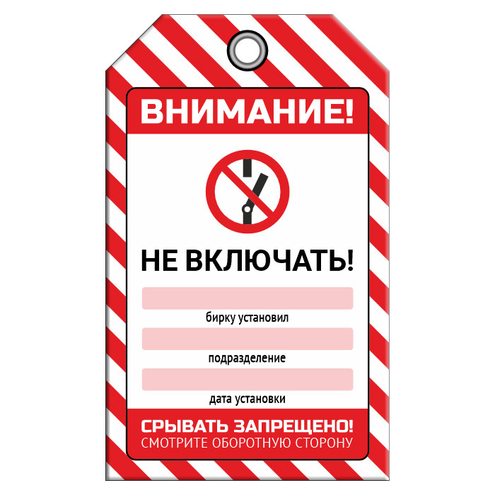 Бирка «НЕ ВКЛЮЧАТЬ!» (1 шт., двусторонняя, пластик, 70х115 мм) в Обнинске купить