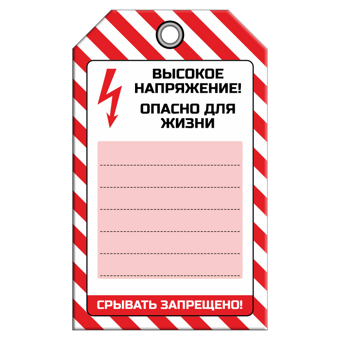 Бирка «ВЫСОКОЕ НАПРЯЖЕНИЕ» (1 шт., односторонняя, пластик, 70х115 мм) в Обнинске купить