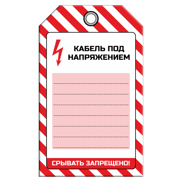 Бирка «КАБЕЛЬ ПОД НАПРЯЖЕНИЕМ», 2 вариант (1 шт., односторонняя, пластик, 70х115 мм) в Обнинске купить