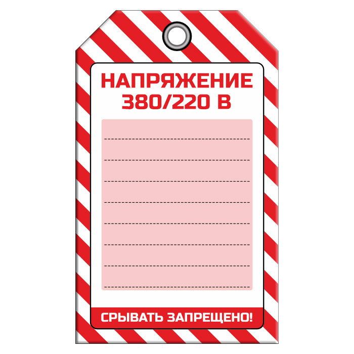 Бирка «НАПРЯЖЕНИЕ 380/220 В» (1 шт., односторонняя, пластик, 70х115 мм) в Обнинске купить