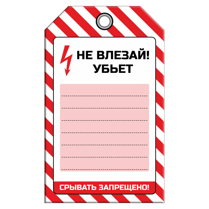 Бирка «НЕ ВЛЕЗАЙ! УБЪЕТ» (1 шт., односторонняя, пластик, 70х115 мм) в Обнинске купить