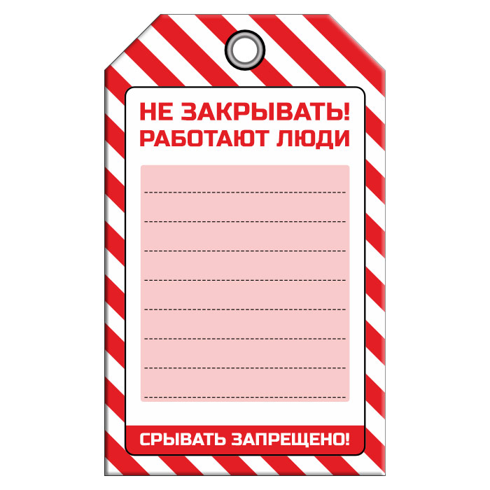 Бирка «НЕ ЗАКРЫВАТЬ! РАБОТАЮТ ЛЮДИ» (1 шт., односторонняя, пластик, 70х115 мм) в Обнинске купить