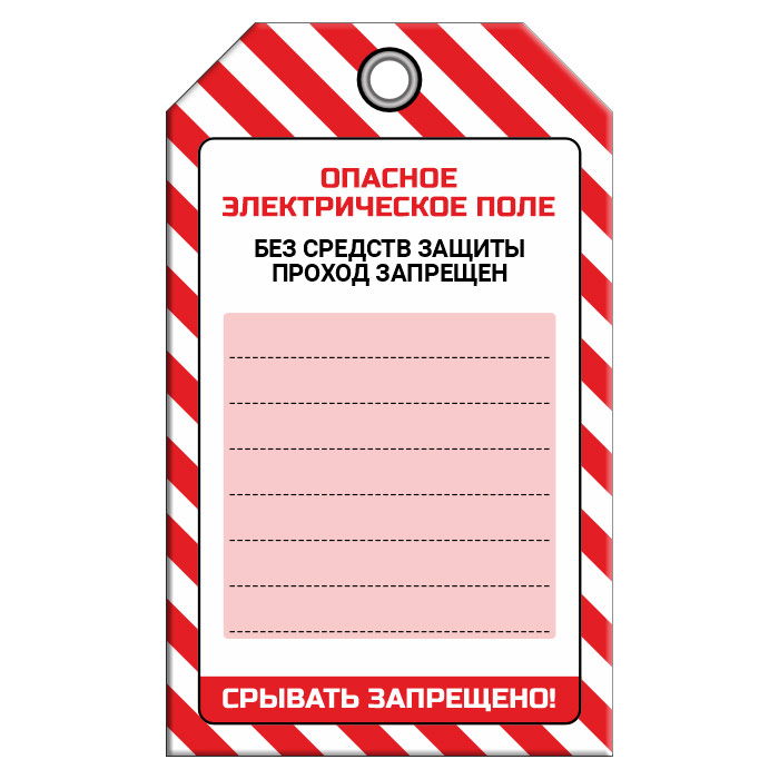 Бирка «ОПАСНОЕ ЭЛЕКТРИЧЕСКОЕ ПОЛЕ» (1 шт., односторонняя, пластик, 70х115 мм) в Обнинске купить