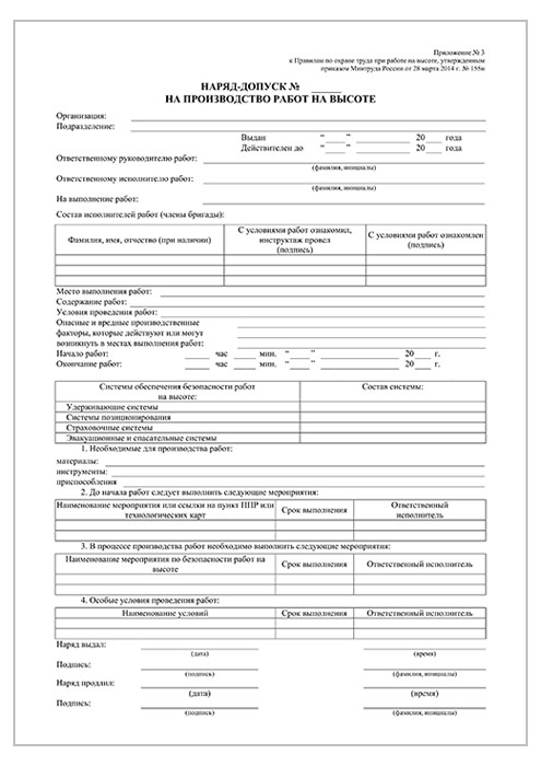 Наряд-допуск на производство работ на высоте (упаковка из 100 штук) в Обнинске купить