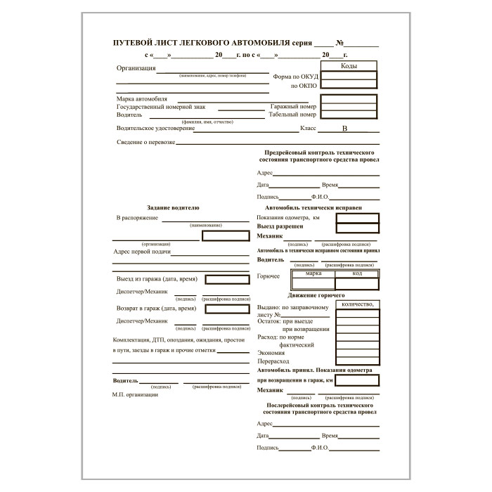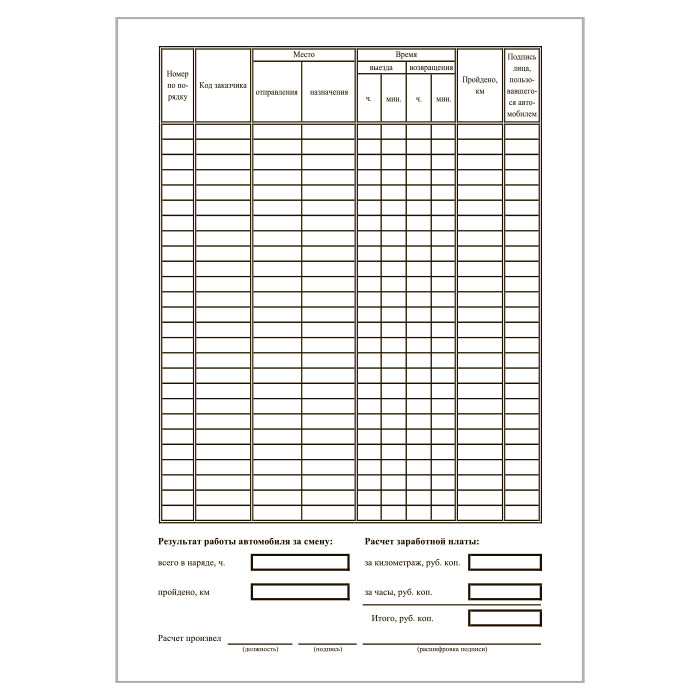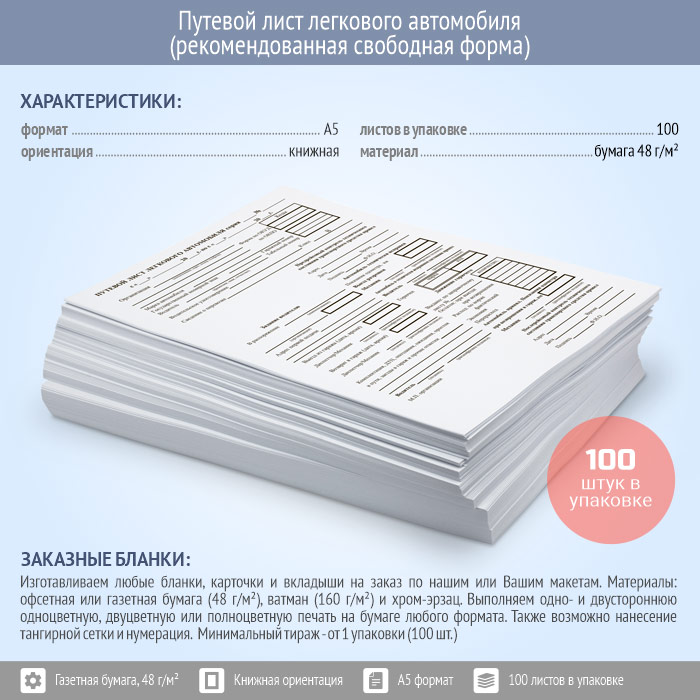 Путевой лист легкового автомобиля (рекомендованная свободная форма, упаковка из 100 штук) в Обнинске купить