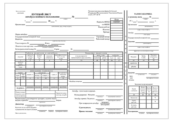 Путевой лист автобуса (форма № 6, упаковка из 100 штук) в Обнинске купить