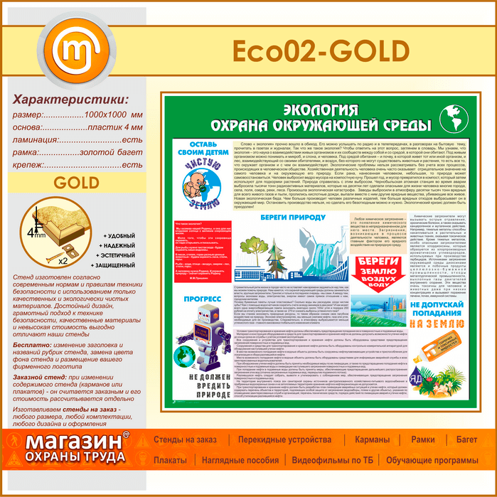 Стенд «Экология - Охрана окружающей среды» (ECO-02-GOLD) в Обнинске купить
