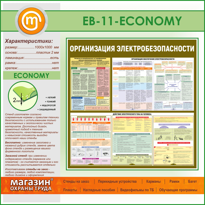 Стенд «Организация электробезопасности» (EB-11-ECONOMY) в Обнинске купить