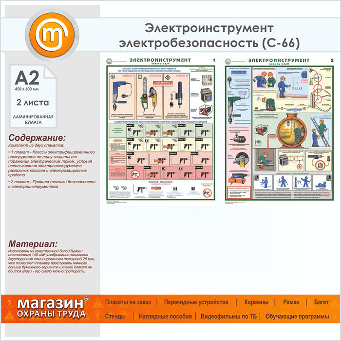 Плакаты «Электроинструмент - электробезопасность» (С-66, ламинированная бумага, А2, 2 листа) в Обнинске купить