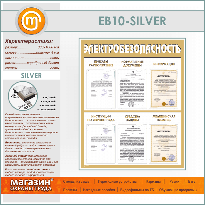 Стенд «Электробезопасность» с 6 карманами (EB-10-SILVER) в Обнинске купить