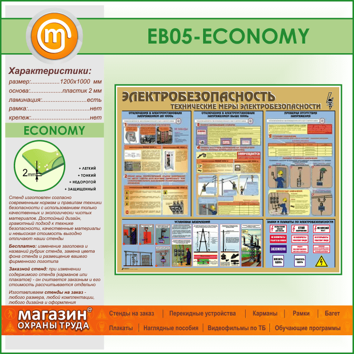 Стенд «Электробезопасность. Технические меры электробезопасности» (EB-05-ECONOMY) в Обнинске купить