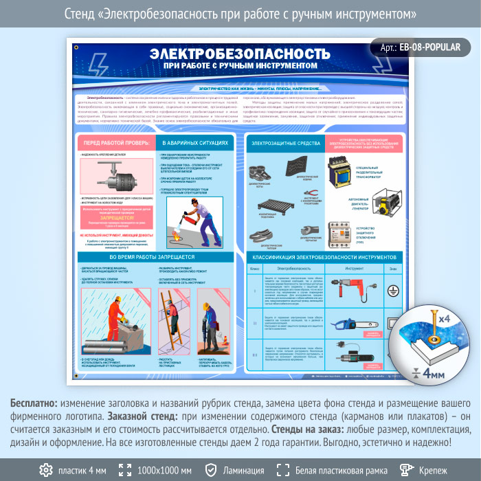 Стенд «Электробезопасность при работе с ручным инструментом» (EB-08-POPULAR) в Обнинске купить
