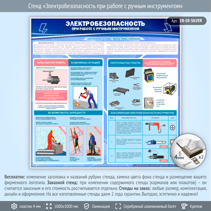Стенд «Электробезопасность при работе с ручным инструментом» (EB-08-SILVER) в Обнинске купить
